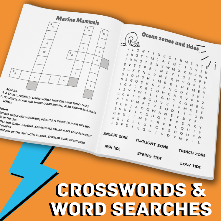 - Word Puzzles: Dive into crossword and word search books with enriching themes from our diverse oceans.